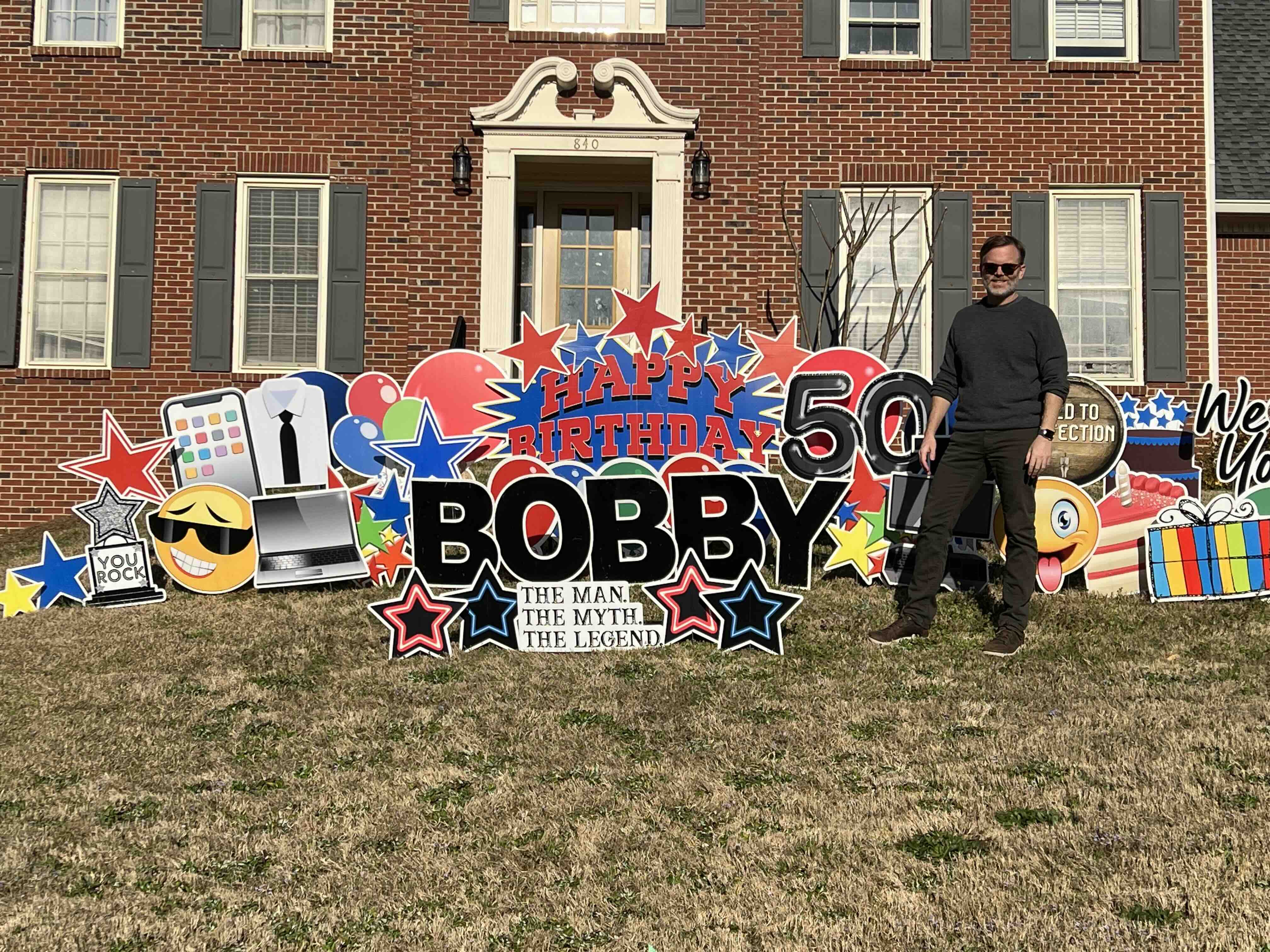 In 2022 I woke to find an enormous sign display in front of my house that said "Happy Birthday BOBBY: THE MAN THE MYTH THE LEGEND". Zola took a picture of me standing in front of it. I have no further notes.
